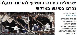 בהארץ לא ידעו במהלך הדיווח שיש יהודים שם, ולכן, אולי, הידיעה מופיעה רק בע' 9 עם הכותרת "14 הרוגים בפיגוע בבית קפה תיירותי במרקש שבמרוקו".
