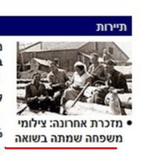 מתה בשואה. HP ynet. מהעמוד של נתי אורנן בפייס.
