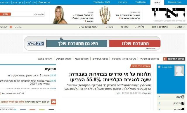 אתר הארץ שינה את פניו הלילה. הוא דומה יותר לעיתון. שחור. לבן. בעיקר לבן. התכול נמצא רק בסרגל.