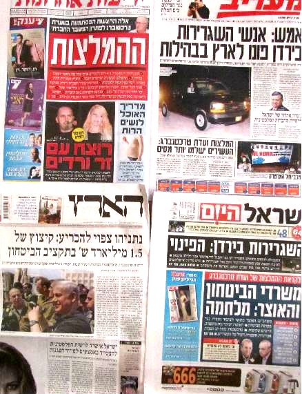 מעריב וישראל היום מאחדים כותרות. הארץ הקיצוצים הצפויים וידיעות – דומים.