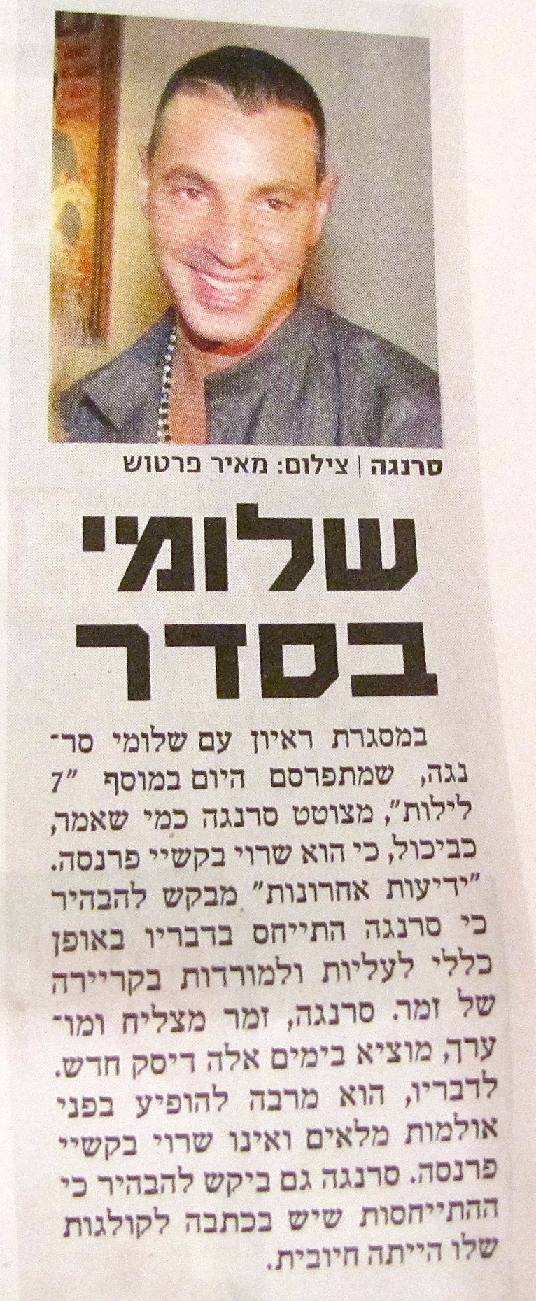 וזה התיקון שהתפרסם לראיון עם שלומי סרנגה ב-7 לילות בע' 14 של ידיעות.