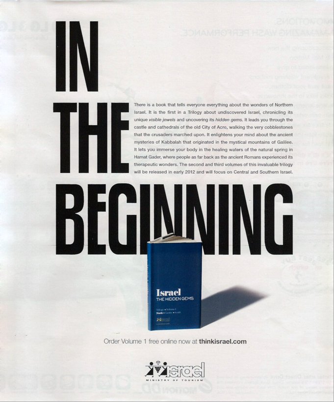 משרד התיירות משקיע בפרסומה של ישראל בתפוצות. המודעה הקטנה היא מהגרדיאן והגדולה מדיילי טלגרף.