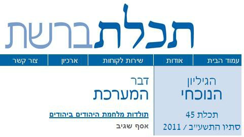 כתב העת תכלת עומד בפני סגירה. עורכו, ידידי אסף שגיב, סיפר לי על כך זה מכבר, אבל ביקש שלא אכתוב, כי הוא מעניק את הסקופ והראיון למעריב. אז לא כתבתי, כי נו, כמה חברים כבר נשארו לי בחיים.