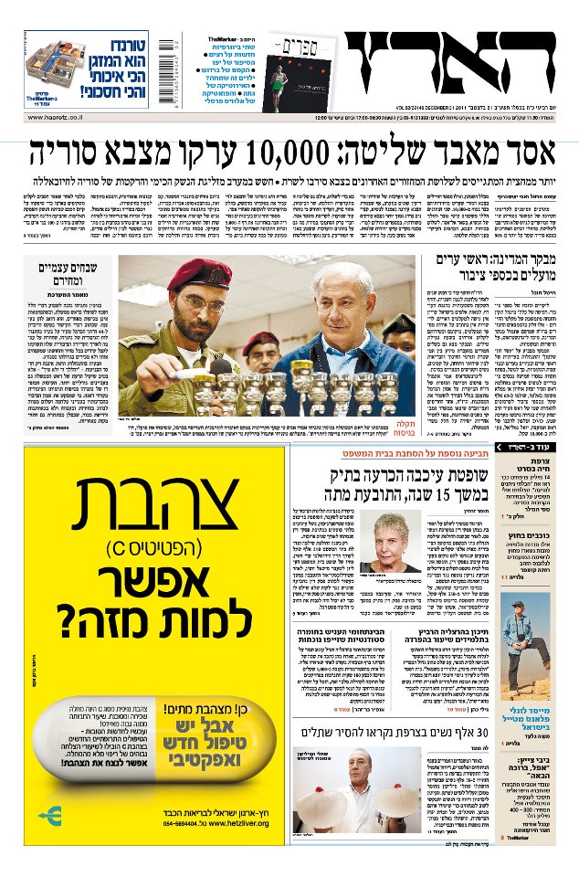 כיתמונהארץ: "תקלה בניסוח בסביבתו של רה"מ בנימין נתניהו אמרו אמש כי קטעי הקריינות בטקס האזכרה לקורבנות השריפה בכרמל, ששיבחו את פועלו, היו 'תקלה חמורה שלא היתה צריכה להתרחש'. בתצלום נתניהו אתמול בהדלקת נר ראשון של חנוכה בבסיס חטמ"ר אפרים"