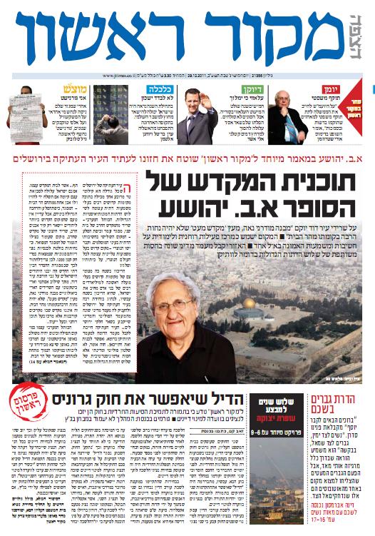 ועוד הזיה בכות' ראשית: לא.ב. יהושע יש תוכנית אב לעיר העתיקה בירושלים (מתוך מקור ראשון, הבוקר):