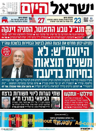 שער ישראל היום מכוסה במודעה. זו הסיבה שהבאתי את שערו פעמיים. למרות שהעונש צריך היה להיות רק שער המודעה.