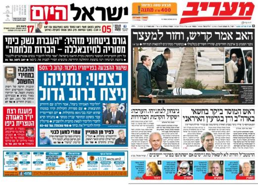 במעריב אפשר לקרוא על כך בע' 3, בישר"ה בשער ובע' 3, ובהארץ זו הידיעה השנייה בשער.
