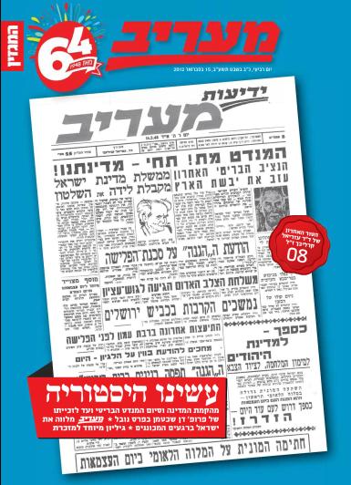 מעריב, שנולד ב-15 בפברואר 1948 חוגג 64 שנים, ולכן יצר לעצמו גיליון מזכרת המורכב מכל מיני שערים שהעיתון גאה בהם, וממאמרים משנים עברו פלאס שניים ממעריב דהיום: אחד של מאיר בלייך, "מוותיקי מעריב והיועץ המשפטי של העיתון" ושני של שי גולדן, "סגן עורך מעריב כיום".