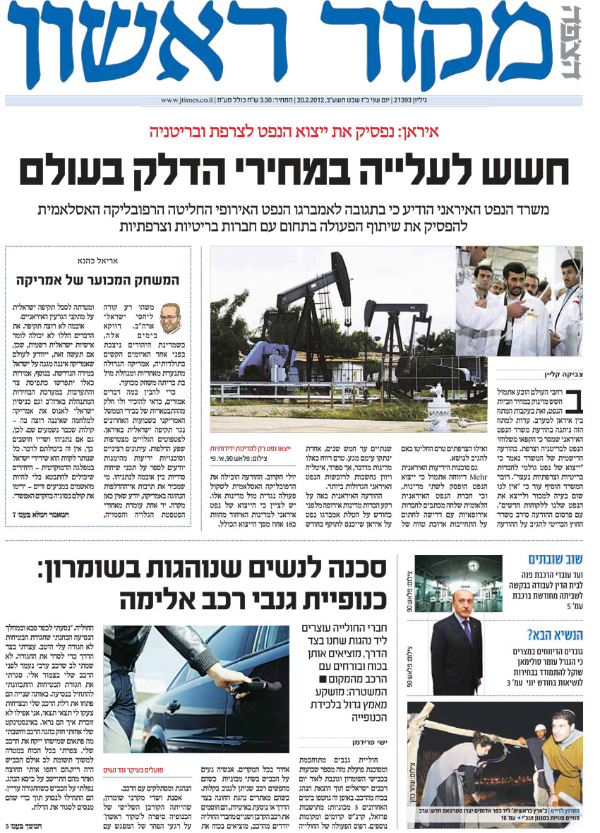 הארץ: כות' ראשונה בשער + ע' 5