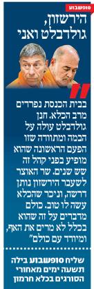 מצד אחד, היה זה אולי תמים מצדי לצפות לטיפול אחר מצהובון, מצד שני, אני בוש ונכלם לחשוב על גולדבלט והירשזון ומשפחותיהם פותחים את עיתון החג ומגלים את "תמונתם" במדים כתומים.