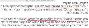 "עד עתה לא אותרה האישה שנגדה על פי החשד בוצעו המעשים, ואולם במשטרה מעריכים כי היא תמסור את עדותה בימים הקרובים".