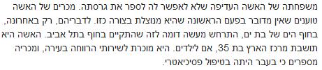האם זהות האישה ידועה למשטרה והיא טופלה על ידי גורמי הרווחה, או שמא לא ידועה זהותה? רק שתי שורות מפרידות בין הבל אחד למשנהו.