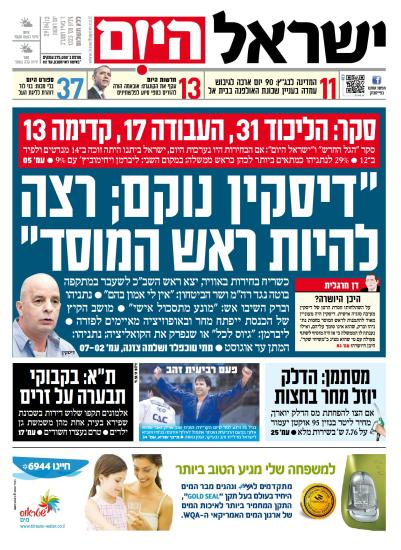 סליחה אם אני מפריע לך להגיב לעצמך, אבל כמו שתראה בפוסט למעלה, ישראל היום דווקא יצא נגד דיסקין. אם אתה טוען במשתמע שישראל היום זה לא תקשורת אז נחה דעתי, ובעניין הזה לפחות אנחנו מסכימים.