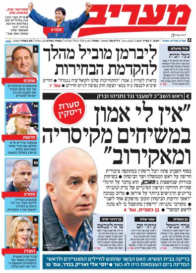 במעריב הדיווח מצומצם הרבה יותר (אבל גם פה זה שער המוסף).