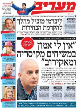 במעריב (כפ' 2-3, 4-5), שאוחז בכות' מרכזית דומה לזו של ידיעות (כות' הגג היא על ליברמן המוביל מהלך להקדמת הבחירות).
