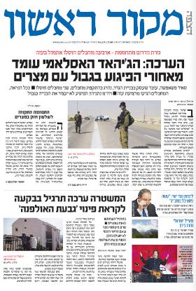 בידיעות חורצים אלכס פישמן וסמדר פרי: יש להתרגל לעובדה שהגבול הדרומי יהיה גבול עוין. עד ע' 6 מסקר העיתון את האירועים במצרים ובדרום).