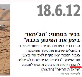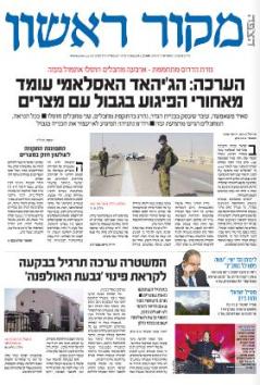 במעריב (כפ' 2-3): "החשש: סיני הופכת לדרום לבנון" (מי אומר? גורם בטחוני בכיר בצבא). או גן עדן לטרור. סיקור האירוע.