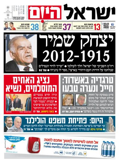 בידיעות (כפ' 4-5) סופד לשמיר לשעבר אחר, אהוד אולמרט. וגם איתן הבר.