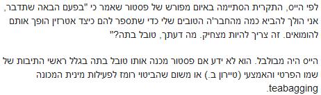 מדוע זה לא הסבירו לנו עורכי מוסף הארץ מהי אותה פעילות מינית המכונה teabagging? לא יפה.