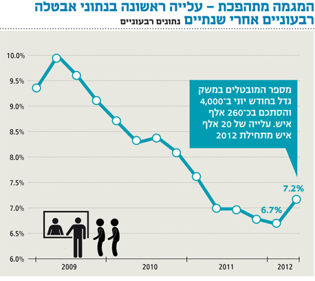 "האבטלה בשיא של 3 שנים" (ישר"ה, ע' 23).