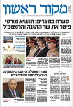 בהארץ, במקור ראשון ובישראל היום: הנשיא מורסי מדיח את הרמטכ"ל ואת שר ההגנה שלו.