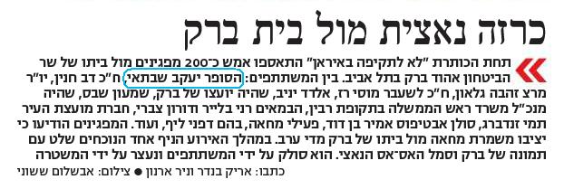 בע' 4-5 הכות' הענקית (ע"פ חצי עמוד) היא "דוקטור אהוד ומיסטר ברק". למה? כי אייכנר מזכיר ש"דווקא הוא היה זה שלפני 5 שנים התנגד באופן תקיף לתקיפה הישראלית המוצלחת נגד הכור הגרעיני בדיר א-זור שבצפון מזרח סוריה".