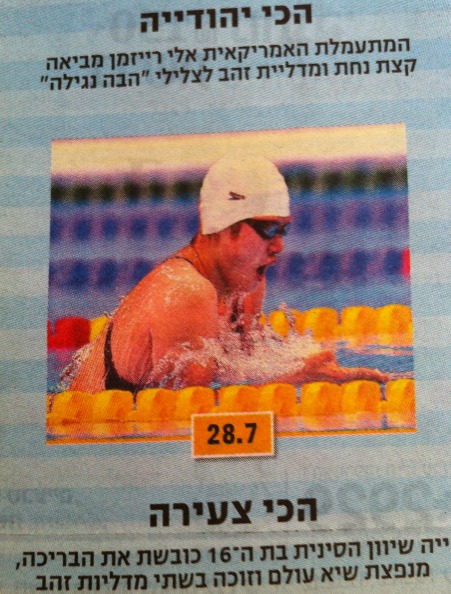 אגב כך, שאפו לשועלי-שריד על כך שלא היססו לציין שגלושקוב (שחיה צורנית) פגעה בול באחד ההימורים שערך עיתון "הארץ" קודם לאולימפיאדה