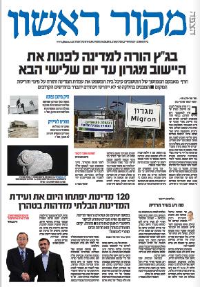 לרגל פינוי מגרון ביום שלישי הקרוב זכה נתניהו במודעה הזו המופיעה רק במעריב: