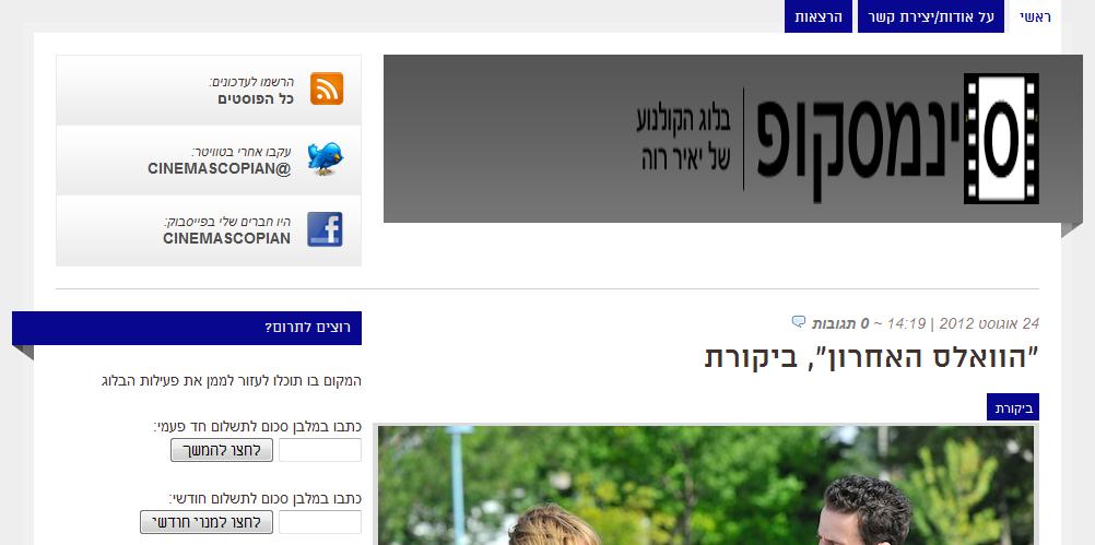 זהו היום האחרון של סינמסקופ באתר אורנג'. מחר יעבור הבלוג רשמית למשכן קבע תחת הדומיין שלו.