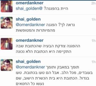 והנה מסמך שחבל. ציטוט דיאלוג (פומבי) באינסטגרם בין הדירקטור והבן של, עומר דנקנר, לבין שי גולדן, סגן עורך העיתון.