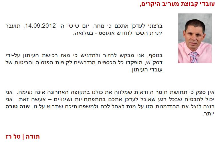 עדכון, הודעה לעיתונות, 13:20, החרפת הצעדים של עובדי מעריב: