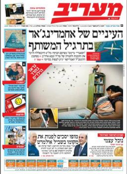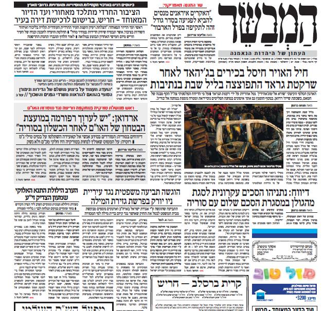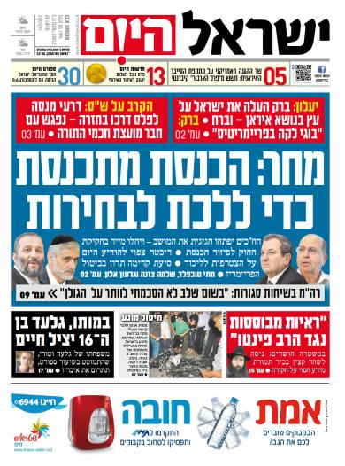 בישראל היום – כותרת מרכזית, ולמעשה רוב השער. הכות' בע' 2-3: "נערכים ומתקוטטים".