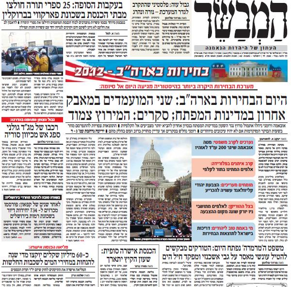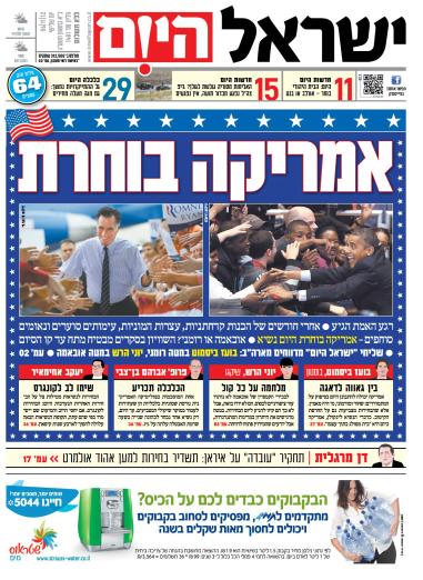כחצי מעמודי החדשות במעריב (13 מתוך 24) מטפלים בבחירות בארצות הברית. אין ספק שבאמריקה מרוצים מהקולוניה הקטנה במזה"ת שעושה להם כל כך הרבה צרות.