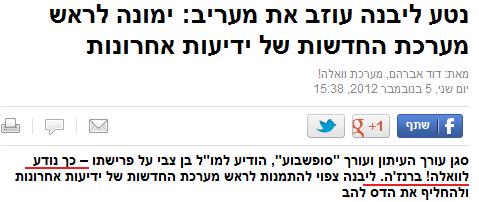 אומנם עדיין גם לא נודע להם משום מה שליבנה סגר עם ידיעות כמו שפירסמת אבל הם בטח יקראו את זה אצלך וייפרסמו בקרוב שנודע להם שליבנה סגר עם ידיעות והכל יהיה בסדר. לפחות הם לא ממציאים ידיעות ובזה כבר אפשר להתנחם.