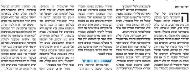 שערורייה. העיתון הזה מתדרדר מדחי לדחי. יומיים הדתיים האלו בקרליבך, וטראח, כתבת השער של המגזין (אריק בנדר) היא על מספר חמש במרצ. ועוד ערבי לא ציוני מכפר קאסם שלא עשה צבא ושכח מה זה להיות יהודי, עיסאווי פריג'. השמאל עשה להם שטיפת מוח, טפו. לא ייאמן. תסמונת הבניין החולה. במקום לראיין את נפתלי בנט ואת ליצמן מראיינים עוכר ישראל.
