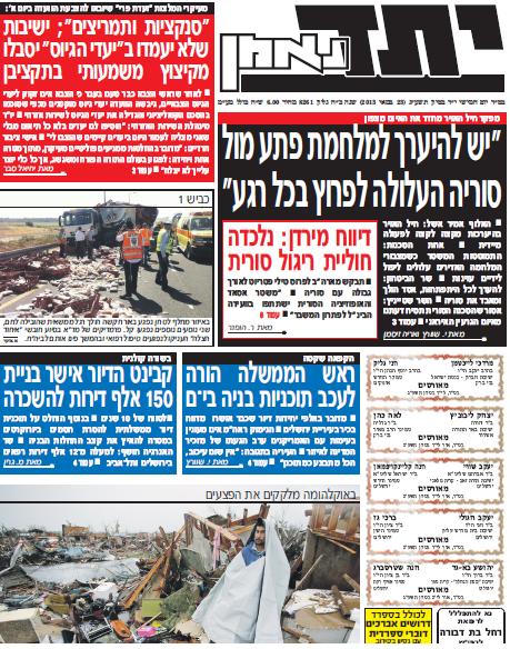 השני בגודל ובקידום הסיקור הבוקר הוא ידיעות, שמקדם את הדיווח לע' 8 עם כותרת ענק: "מחדל רצח הילדות" וכן טור דעה של אריאלה רינגל הופמן על הכשל המשטרתי, כי אין דין דיווח אישה יהודיה כדין דיווח של בדווית.