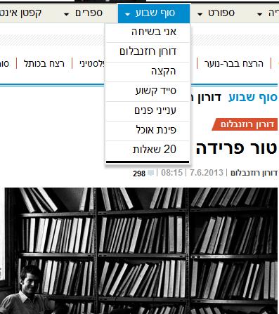 כשנכנסים ללשונית מוסף הארץ אפשר לראות את המדורים לפי הא'-ב'. המדור השני, של דורון רוזנבלום, עדיין מופיע. טור הפרידה הוא המדור האחרון. נראה כמה זמן יישארו כך פני הדברים. לכל הטורים.