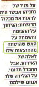 מאחר שאני מתארגנת לחיים בלי הארץ המודפס, אני ניזונה ממה שכותבים או מספרים לי חברים עתירי עיתון.