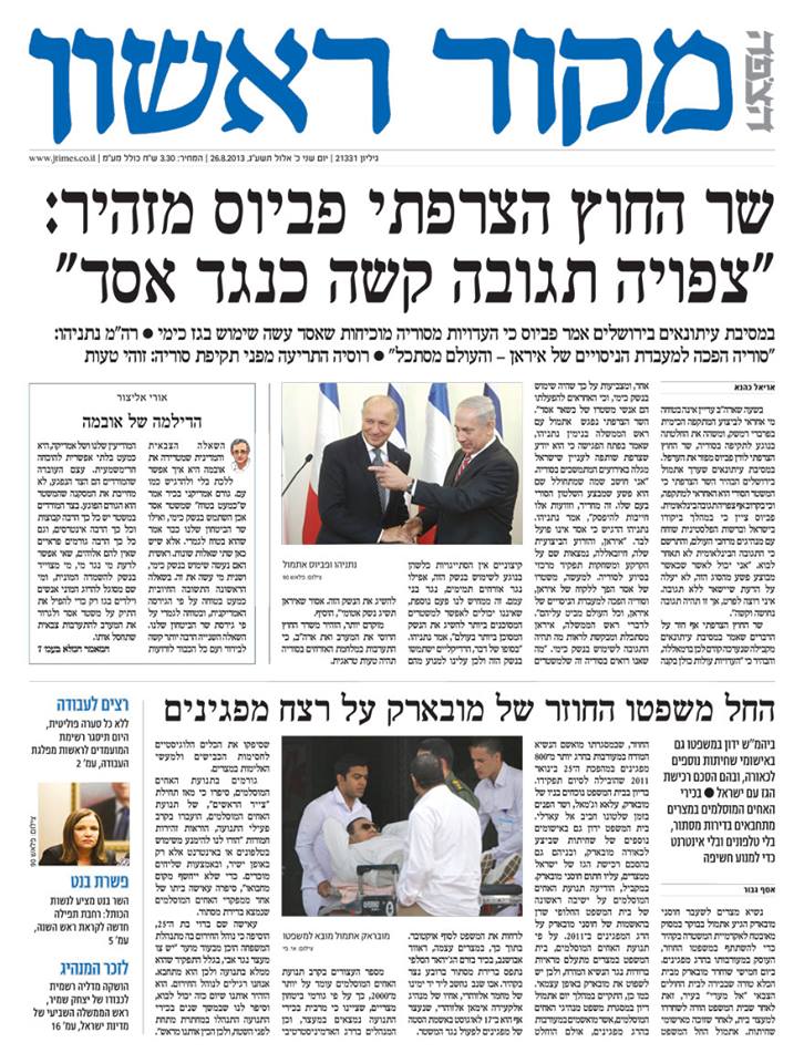 כך נפתחת הידיעה המרכזית בכפולת 2-3 במעריב
