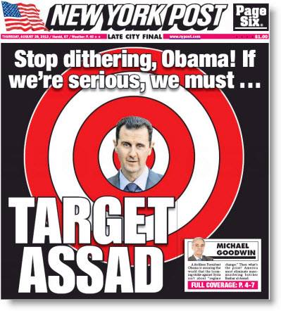 חוץ מלמסור לסוריה את השעה המדויקת שבה הולך לקרות מה שהולך לקרות ולהתנצל מראש על חוסר הנימוס והשעה המאוחרת, לאסד כבר ברור כמעט הכל, כולל זה שלאובמה אין באמת עניין להדיח אותו ממקומו. מה שהיה הוא שיהיה העיקר שאובמה יוכל לסמן וי , לגמור עם זה וללכת לג'יי לנו.
