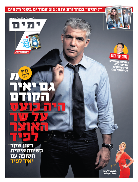 הראיון עם לפיד מעצבן כמצופה. להתעצבן ממנו זה הכי צפוי בעולם. שבעה עמודים, כתבה פותחת באחד משני חלק 7 ימים הבוקר. כמות המשפטים המעצבנים אינסופית. אני מהרהרת אם ידיעות יעלה מתישהו את הראיון לרשת. אולי לכבוד ראש השנה? כלומר בעוד ארבעה ימים? אז בינתיים כן אביא כמה ציטוטים, וממש אשתדל שלא יוצאו מהקשרם. כפי שצפיתי, וכדרך כל בשר, הראיון בין השניים מחויך. מן הסתם בסוף לחצו ידיים וייתכן גם שכתפיים נטפחו.