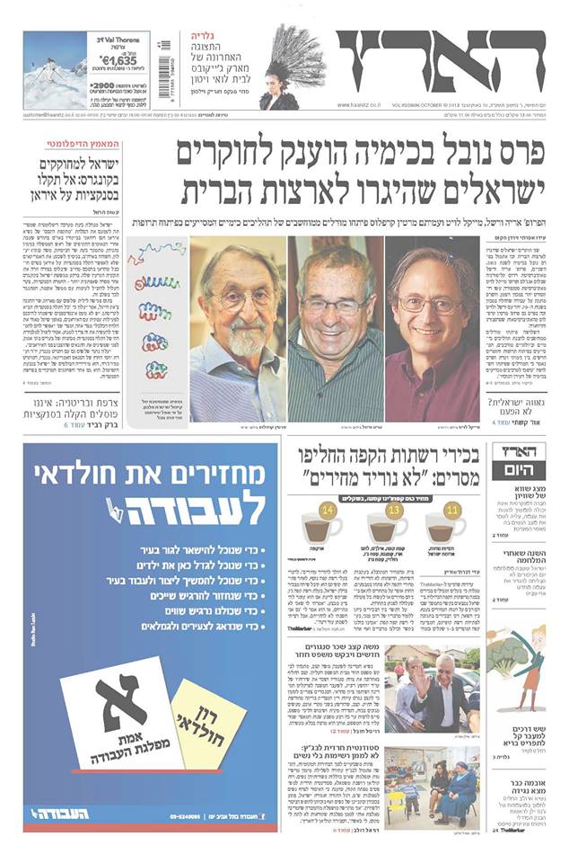"פרס נובל בכימיה הוענק לחוקרים ישראלים שהיגרו לארצות הברית" היא הכותרת ההגיונית בהארץ.