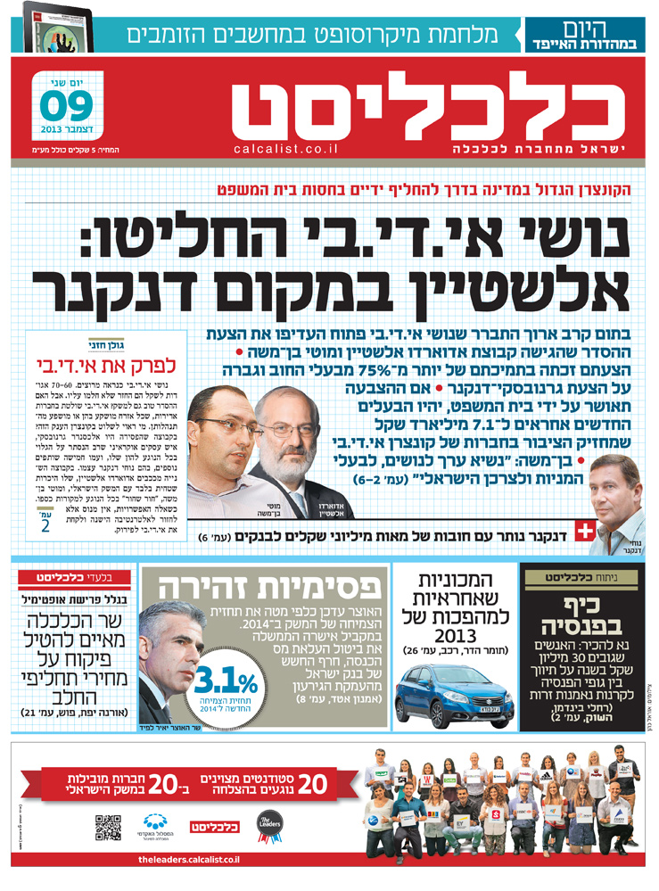 שער מעריב: "המשקיעים הכריעו: נוחי דנקנר יאבד את אי.די.בי".