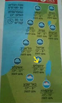 בידיעות תעתעו בתושבי ירושלים: במפה המתפרסמת בשער האחורי הציעו להם 27 מעלות היום.