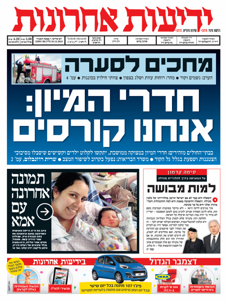 בכל פעם שנדמה לי שראיתי הכל, אני מופתעת מחדש. למשל הבוקר שער ישר"ה מציג תמונה ושאלות למה שעוד לא קרה, ומי יודע אם יקרה. הרעיון, כנראה, הוא להקדים את המתחרים, למרות שלישר"ה אין מתחרים. עיתון לבדד ישכון.
