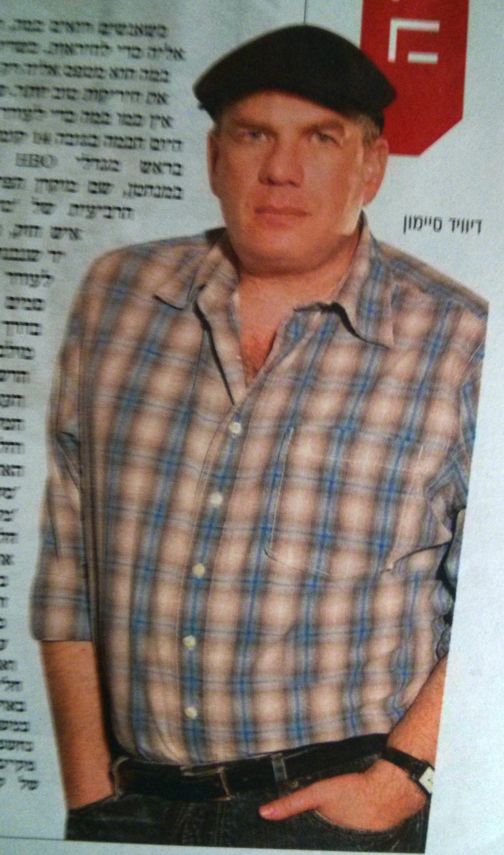 ובאותו עניין באופן מפתיע. נו, זה באמת שטויות, משפט שמי שם לב אליו בכלל. אבל גון בן ארי מראיין בניו יורק את דייוויד סיימון, יוצר רצח מאדום לשחור, הסמויה וטרמיי. סיימון, "מוצק, קירח ורחב. לא נראה יהודי". כה כותב בן ארי.