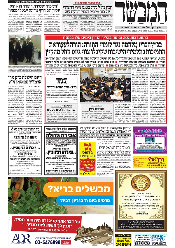 החלטת בג"צ לא לשלם לאברכים שלא התייצבו לשירות היא הכותרת הראשית עד המרכזית בל העיתונים, כולל המבשר, כמובן, ששם הנוסח הוא "בג"ץ הכריז מלחמה על לומדי תורה".