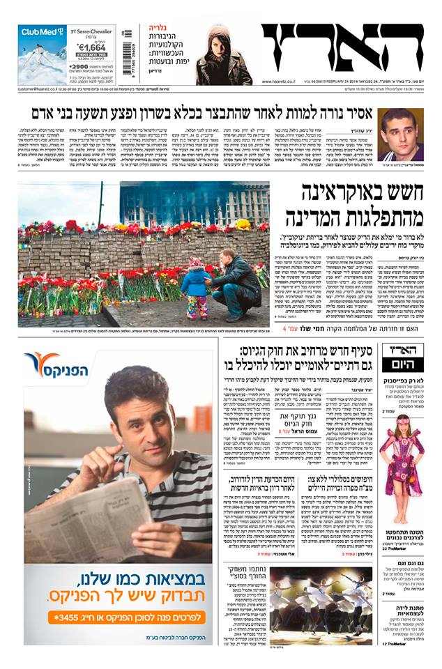 אוקראינה: בועז ביסמוט (ישר"ה) טס, העיתון היחיד שזו כותרת הגג שלו. דיווחיו מופיעים ע"פ ע' 5.