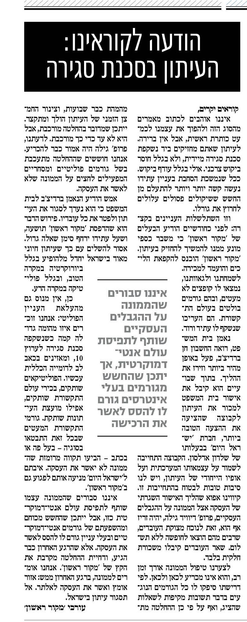 מתוך שער העיתון.