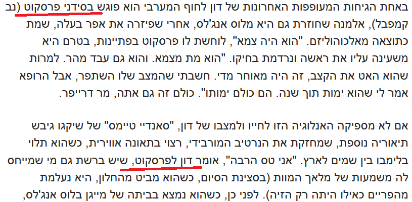 "הערת הכותב (26.5): הסיבה שקראתי לדמותה של קמפבל סידני פרסקוט, שמה מסרטי "צעקה", היא כי יש תיאוריה שהיא מייצגת את מלאך המוות ובסרטי "צעקה" הרוצח מתחפש למלאך המוות – מפגש בין המוות בגרסתו הברגמנית ב"החותם השביעי" ל"הצעקה" של מונק. הלצה כושלת שלא הובנה. "